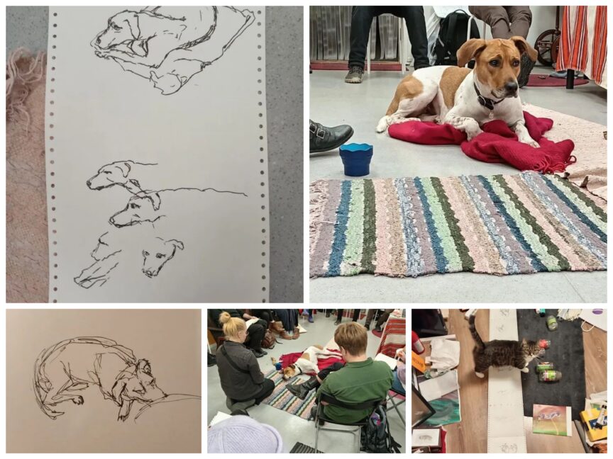 Galleria Joellassa piirretään kevään mittaan kissoja ja koiria.