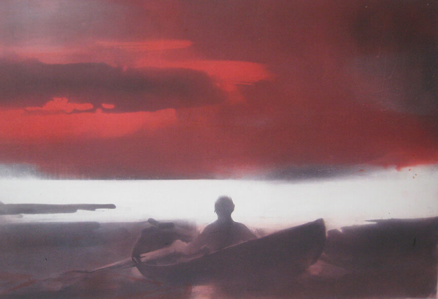 Näyttelyn kuvat ovat syntyneet pitkän kypsyttelyn tuloksena. Ne ovat eläneet mielessäni vuosia, muovautuneet vähitellen luonnoksiksi ja keskeneräisiksi metallilaatoiksi, kunnes ovat vähitellen löytäneet oman muotonsa. Ajatus soutuveneestä ja järvestä on kulkenut mukana erityisen vahvana – ne olivat lapsuudessa ja nuoruudessa niin keskeinen osa olemista, että niistä on kasvanut minulle paitsi muistojen kantajia myös vertauskuvia, melkein pakkomielteisiä hahmoja.